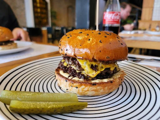 Das Ambiente des Restaurants ist urban und gemütlich, mit rustikalen Backsteinwänden und einer offenen Küche, die einen Blick auf die Zubereitung der Speisen ermöglicht. Die Speisekarte bietet eine Vielzahl von Burgerkreationen, darunter auch vegetarische und vegane Optionen wie den Falafel-Burger. Besonders beliebt sind die Süßkartoffelpommes, die als Geheimtipp gelten.